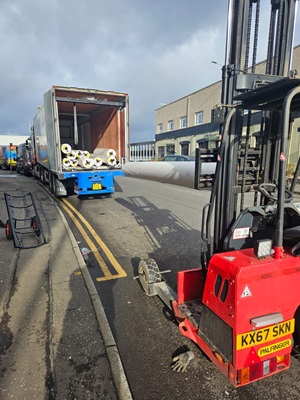 Manual Handling of Carpet rolls poses many Health and Safety problems. Large carpet rolls are too heavy to lift manually and are often difficult to remove from the trailer due to friction between the rolls. Also for full trailers the driver must climb up the carpet load giving a high risk of injury from falling.