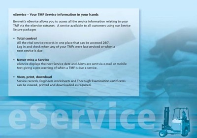 eService – Your TMF Service information in your hands. eService allows you to access all the service information relating to your TMF via the eService extranet. A service available to all customers using our Service Secure packages.