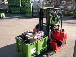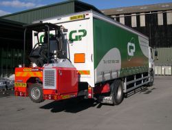 A Palfinger truck mounted forklift is independent from the collection vehicle. This allows the LGV to be parked in the most convenient position and then the TMF can drive to the collection point. The smaller and more manoeuvrable TMF causes much less inconvenience and disruption during the loading process often allowing normal operations on the site to continue