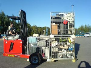 Increased Volume – The amount of recycled material that can be carried by a LGV is limited by either the payload (weight of load) or the volume of load space. A Palfinger truck mounted forklift can double stack loads to the maximum volume of the vehicle.
