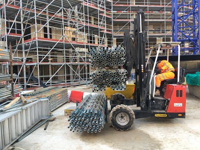 With a Palfinger TMF, there is no need to get the truck exactly where the delivery is required. If the site is conjested, muddy or has restricted access, it’s no problem. Park the truck in a convenient and safe place and use the TMF to transport the scaffolding to exactly where required.
